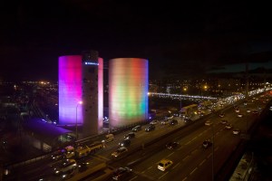 En París, donde convergen el boulevard periférico y el muelle Ivry (Quai d’Ivry), una monumental instalación artística proyecta en las noches la actividad magnética del sol en tiempo real, utilizando como pantalla dos gigantescos silos de 40 metros de altura, visibles desde el río Sena. Se trata de la obra del artista francés Laurent Grasso.