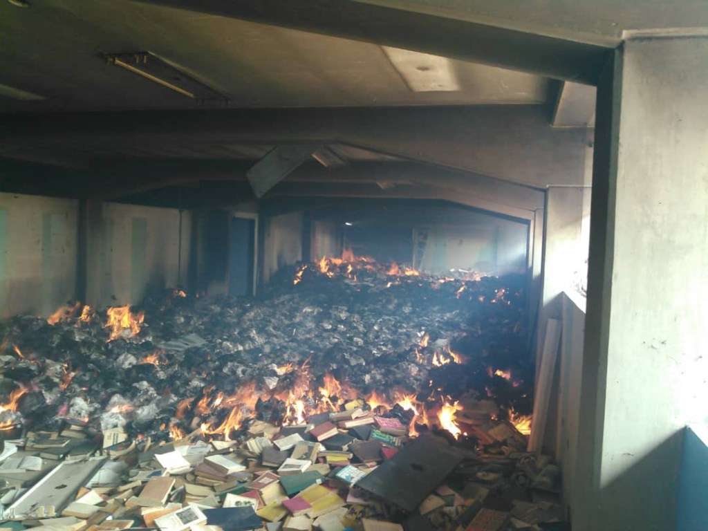 La noticia del pasado lunes, donde las autoridades la Universidad de Oriente (UDO) denuncian la quema de miles de libros e investigaciones impresas que fueron reducidos a cenizas, pudiera ser el corolario de estos 21 años de destrucción del país por el régimen castro-chavista. Los actos vandálicos sucedidos en la UDO, se inscriben en un guión establecido por Hugo Chávez cuando hablaba de la importancia de la “batalla de las ideas para imponer el llamado socialismo del siglo XXI” y que dio comienzo, entre otras acciones, a la destrucción de las bibliotecas en el país que contuviesen “libros de ideología capitalista”, como expresara Ignacio Barreto, militante chavista y director del Instituto Autónomo Biblioteca Nacional, en la entrevista que en 2009 le hiciera Laura Helena Castillo (El Nacional, Siete días, 29.03.09). Allí, Barreto expresa sin ambages sus inquisitivas ideas sobre los libros: “El problema de la ideología no es un asunto ni proselitista ni partidista, se trata de la concepción de un Estado, un sistema. La mayor parte de los libros que están en las bibliotecas tiene una ideología dominante capitalista. Los libros de autoayuda incitan al individualismo, a que tu crecimiento personal no tenga nada que ver con el crecimiento del otro. Los libros de historia de hace muchos años ven a la historia desde la dominación. Son libros de ideología capitalista”. En la Biblioteca Nacional apoyan la creación de la sección ideológica en las salas públicas del país, que contiene sólo libros destinados a promocionar el proyecto político de Hugo Chávez. En muchos de sus anaqueles ya se encuentran libros alusivos a la revolución cubana y en cuanto a libros de texto para la educación primaria han desaparecido acontecimientos relevantes de la historia democrática del país, mientras se magnifica la gesta de Chávez cuando en 1992 lideró un golpe de Estado y en el presente intenta establecer un régimen denominado Socialismo del Siglo XXI, acota la periodista.