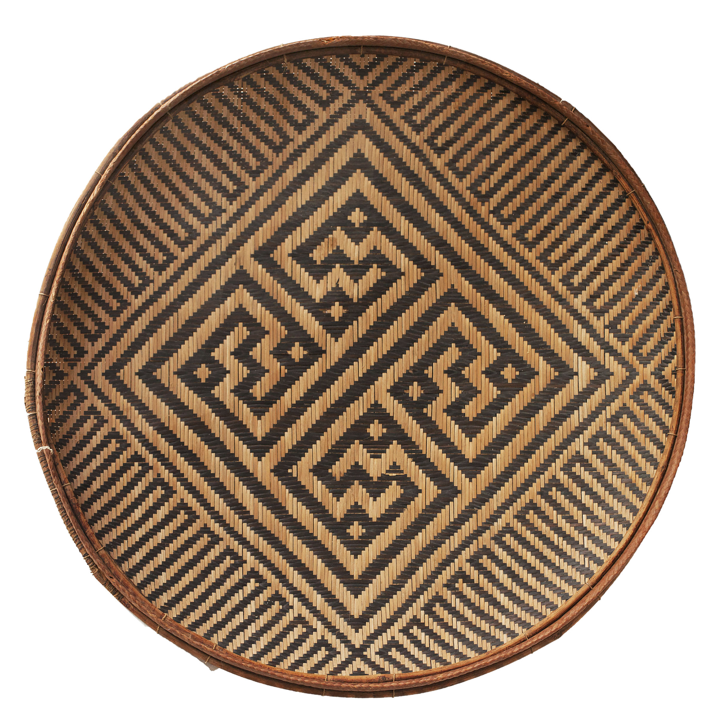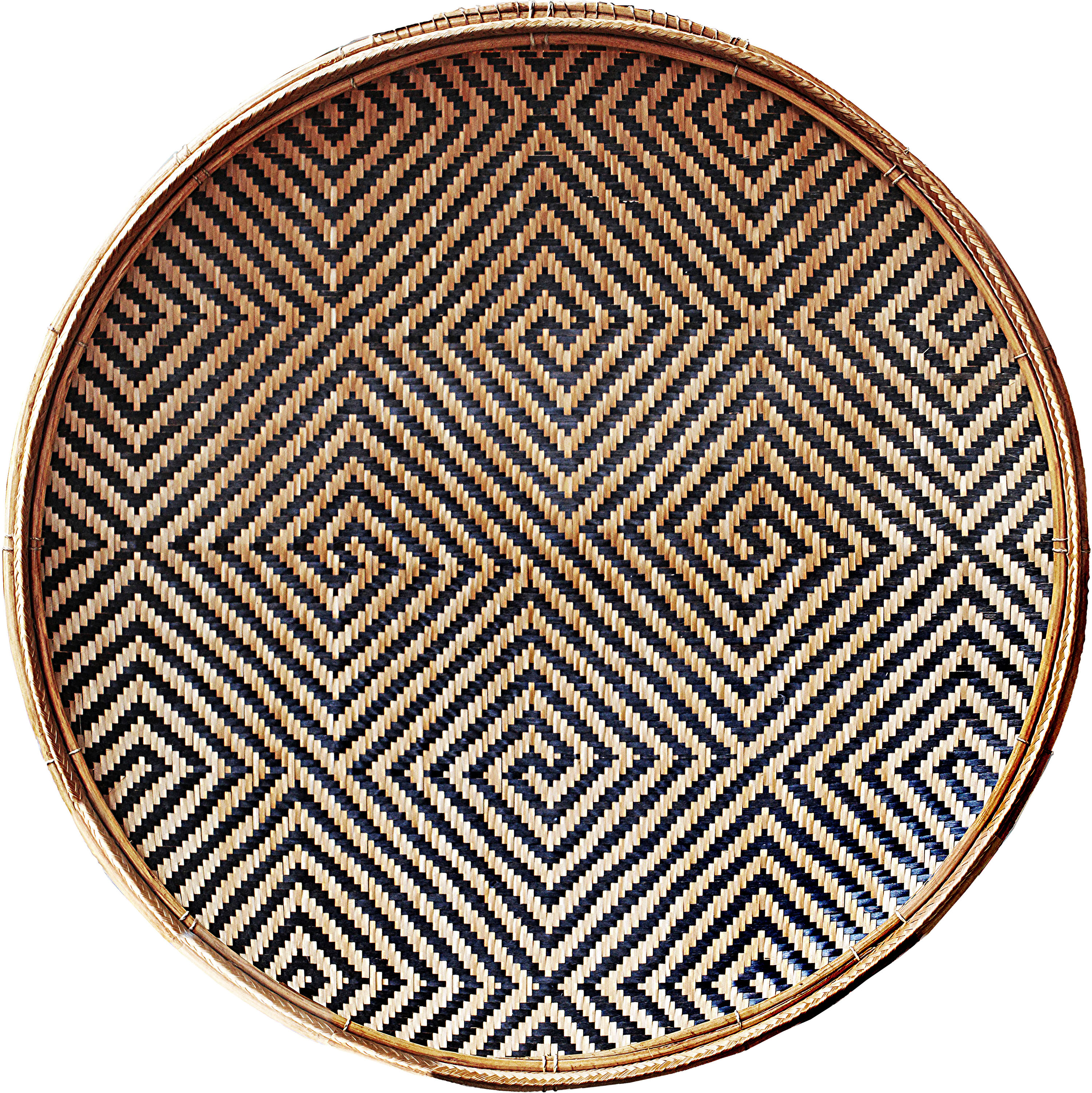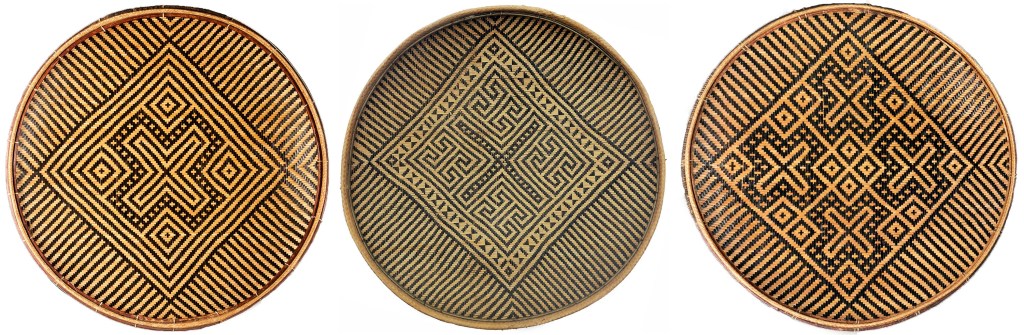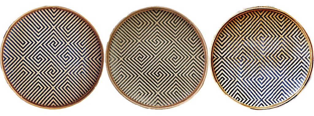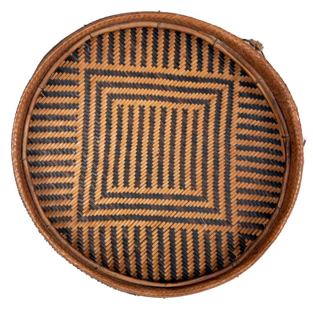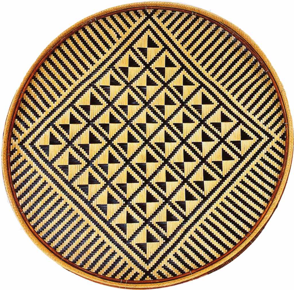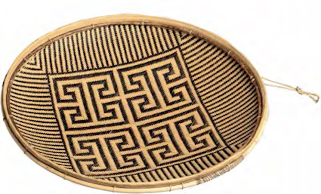 Bandeja denominada «la idea de Kásu» (Kásu-nehodídi). Este complejo diseño de seis vueltas se le atribuye a un tejedor o tawána-ho-náto so’to de nombre Kásu, quien habría vivido en el río Padamo hace unos 150 años. Colectada por Brewer en el río Erebato en 1961