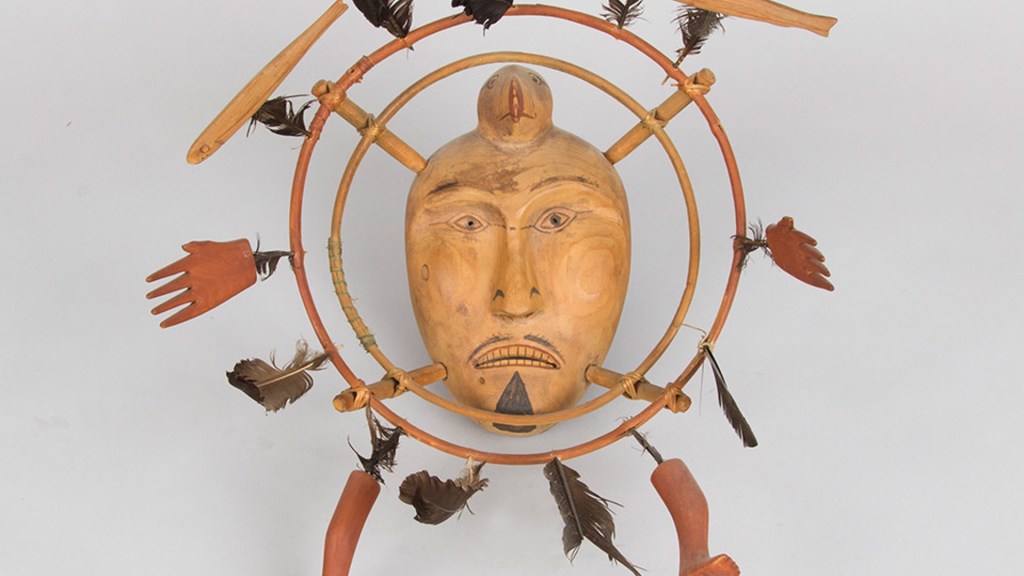 Máscara ritual de un chamán del pueblo Yupit, Alaska, s. XIX. Musée des explorations du monde, Cannes, France.