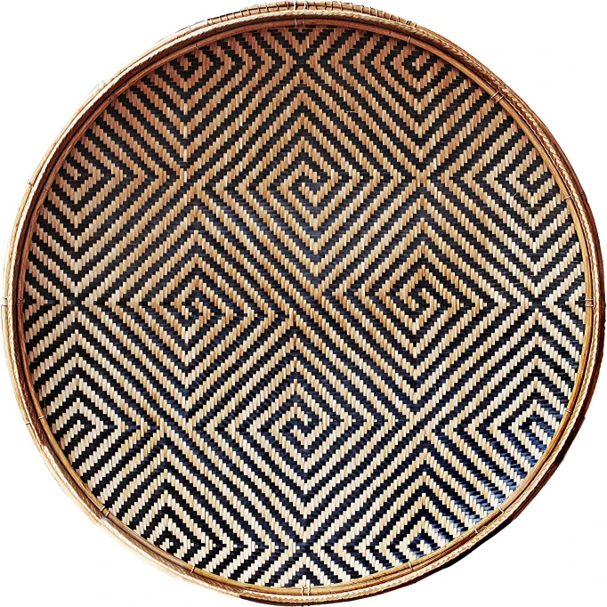 Cesta tejida ye’kwána con diseños de remolinos awídi que generan trances hipnóticos. Charles Brewer-Carías, Simbología de la cestería ye’kwána, portal hacia un mundo paralelo (2019).