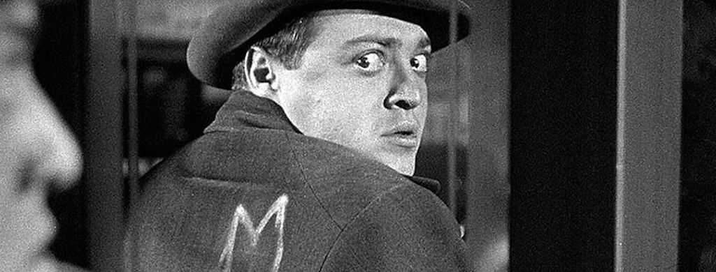 En “M”, magistralmente interpretado por Peter Lorre, el personaje es un psicópata y la policía no logra encontrar ninguna pista sobre las desapariciones y asesinatos de decenas de niños, haciendo pública una recompensa de 10.000 marcos. Los ciudadanos, especialmente las madres, expresan su angustia ante la impotencia e inutilidad de la autoridad. La reacción a este estado de pánico e incertidumbre generalizados es inusitada y deja atónito al espectador en la escena en que los jefes de las diversas organizaciones criminales son quienes deciden buscar y atrapar al asesino. Es notable la intervención de la Madame jefa de las prostitutas cuando exclama que ellas tienen hijos, lo mismo dice el capo mayor de la organización criminal que maneja la red de malhechores, rateros y mendigos de la ciudad. “El asesino está entre nosotros, ¡démosle caza!”, exclaman desde la turba. El capo da la orden de dividir la ciudad por sectores, vigilar y alertar sobre cualquier sospechoso. Es un ratero el que da seguimiento a un individuo que le busca conversación a una niña y es un vendedor de globos ciego quien reconoce la voz del sospechoso y da la alerta. El ratero dibuja con tiza una “M” en su mano izquierda y al pasar caminando hacia el asesino, tropieza intencionalmente al hombre del abrigo negro y astutamente deja estampada la letra en su espalda. A partir de ese momento, toda la red de mendigos, ladrones y criminales identifican y siguen al asesino hasta darle caza en una tensa escena de acción inédita en la historia del cine.